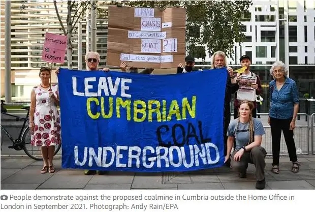 2025年12月(yuè),人們抗(kang)議在坎(kǎn)布裡亞(yà)郡建設(shè)新煤礦(kuàng) 圖源:《衛(wèi)報》